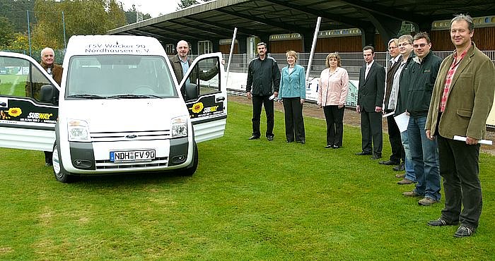 Autor: nnzDer Ford-Kleinbus ist heute Vormittag an den Verein übergeben worden. Zahlreiche Sponsoren aus der Region hatten mit ihrer Werbung die Anschaffung des Fahrzeuges möglich gemacht. Und so freute sich denn auch Vize-Präsident Olaf Schulze über die damit verbundene Identität der Unternehmen mit dem Verein. Letztlich gebe es neben dem materiellen auch einen ideellen Aspekt des Sponsorings. Jeder Sponsor bekam eine Urkunde überreicht und bereits am kommenden Wochenende kann der Nachwuchs den Bus nun nutzen.