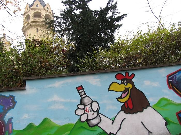 Die sanierungsbedürftige Mauer des Kunsthauses Meyenburg zu gestalten, bot sich mit ihrer Länge von 125 Metern und durchschnittlich 1,50 Meter Höhe für dieses Unternehmen an. "Ein solch großes Unterfangen war auch für mich der erste Versuch, sagte der junge Mann. Bedingt durch 6jährige Erfahrungen im Sprayen suchte er nach weiteren jungen Nordhäuser Künstlern, die bereit waren, dafür ihre Zeit zu investieren und ihr Können zu zeigen. Innerhalb von zwei Wochen und täglicher Arbeit erstrahlt nun die alte Mauer farbenprächtiger denn je.