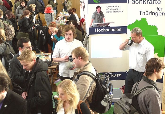Autor: nnzHier können sich Interessierte an den Ständen privat- oder sozialwirtschaftlich agierender Firmen zum Beispiel über Praktika, Bachelorarbeitsthemen oder Stellenangebote informieren. Zusätzlich finden im Rahmen der Messe zwei Informationsvorträge statt. Das erste Referat befasst sich dabei mit den wichtigsten Gesichtspunkten einer gelungenen Bewerbung, während der zweite Vortrag das Thema Sozialmarketing aufgreift. Neben sozialen Einrichtungen des Landkreises Nordhausen präsentierten sich auch hiesige Firmen wie die Schachtbau Nordhausen GmbH.