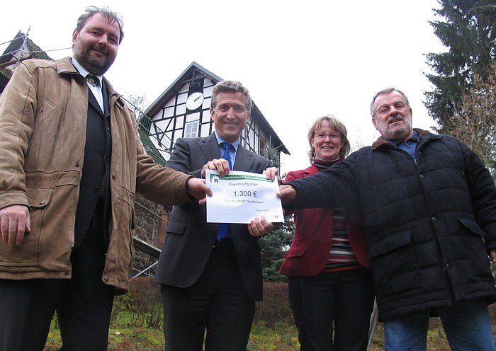 Der Minister für Bundes- und Europaangelegenheiten sowie Chef der Staatskanzlei, Dr. Klaus Zeh (CDU), übergab den Finanzierungsscheck in Höhe von 1.300 Euro persönlich in Rodishain an Bau- und Wirtschaftsdezernentin Inge Klaan (CDU), Ortsbürgermeister Herbert Becker und den Pfarrer der Kirchengemeinde Rodishain, Jörg Thoms.