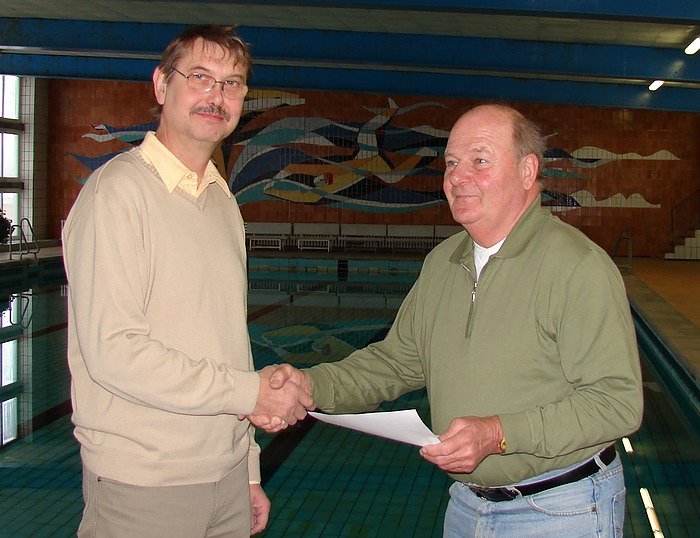 Daher veranlasste der Förderverein, nach Abstimmung mit dem Betreiber der Halle, dass eine moderne Musikanlage installiert wurde. Nun können die Badegäste ihre Runden drehen bzw. schwimmen und dabei 1a-Musikklänge hören. Da macht das Schwimmen doppelt viel Freude.