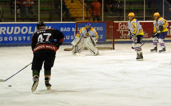 Sowohl Christian Schock als auch John Kraiss glänzten als dreifache Torschützen. Am Dienstag in Langenhagen haben die Wölfe nun die Chance, mit einem Sieg die Tabellenspitze zu übernehmen. Im Heimspiel gegen Adendorf waren es zunächst die Gäste, die etwas überraschend das Kommado übernahmen. Mit gutem Forechecking störte der AEC den Spielaufbau der Wölfe, die Führung durch Andrey Gorbenko fiel nicht einmal unverdient (7.). Mit zunehmender Spielzeit fanden die Harzer aber immer besser in die Partie. Trotzdem war eine Einzelleistung nötig, um zum Ausgleich zu kommen. Alois Öttl hatte sich auf der linken Seite durchgesetzt, das Tor umkurvt und traf aus spitzem Winkel unter die Latte (12.). John Kraiss in Überzahl (17.) und Christian Schock nach schöner Vorarbeit von Erik Pipp (20.) erhöhten auf 3:1. Benjamin Salzmann konnte für die Gäste an alter Wirkungsstätte noch vor der Drittelpause verkürzen.
