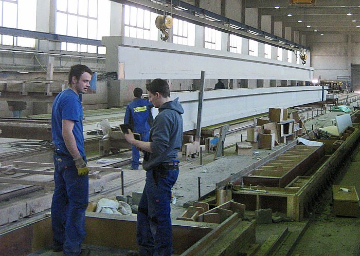 Spannweiten der Betonbinder von 30 Meter sind heute keine Seltenheit mehr. Die Teile, die bislang in Heringen hergestellt wurden, hatten ein Gewicht von bis zu 45 Tonnen. Nach Abschluß der Investition können Teile mit einem Gewicht von 80 Tonnen produziert werden.