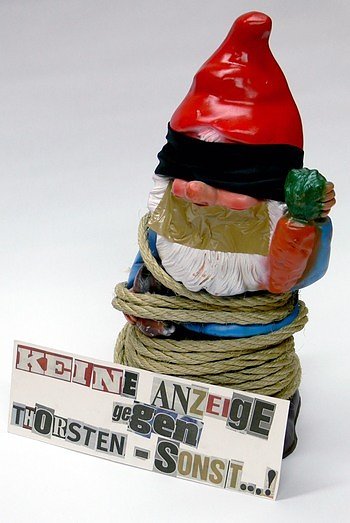 Ein Entführungsopfer ist gefesselt und geknebelt an einem öffentlich einsehbaren Ort in Nordhausen versteckt worden. Aber keine Sorge, es handelt sich nicht etwa um eine der Mitwirkenden der Produktion! Trotzdem soll es natürlich schnell gefunden werden. Wie aus gut unterrichteten Kreisen verlautete, wird die gesuchte Person vermutlich in der Nordhäuser Altstadt versteckt gehalten, möglicherweise im Kellergeschoß eines restaurierten Fachwerkhauses, in dem es viel Wissenswertes über Nordhausen zu erkunden gibt. Das Entführungsopfer ist vom Bürgersteig vor dem betreffenden Gebäude aus bereits gut zu erkennen. Einen Hinweis auf die Identität des Opfers gibt das Foto.