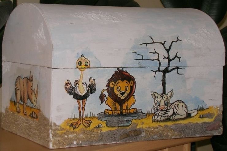 Was da alles reinpasst – alle geheimen Schätze sind gut und sicher verstaut. Und die Kiste selbst ist auch schon ein Schatz, den nicht jeder hat. Im Kurs Riesenschatztruhe am 15. April gestalten die Teilnehmer eine Truhe von 35 mal 23 mal 24 Zentimetern mit der Serviettentechnik. Zur Auswahl stehen ganz unterschiedliche Motive von wilden Tieren, über Piraten bis anmutige Elfen – hier ist für jeden kleinen Seeräuber und jede kleine Prinzessin etwas dabei. Die Motive werden mit einer Modelliermasse hinterlegt, so dass die plastische Wirkung verblüffend ist.