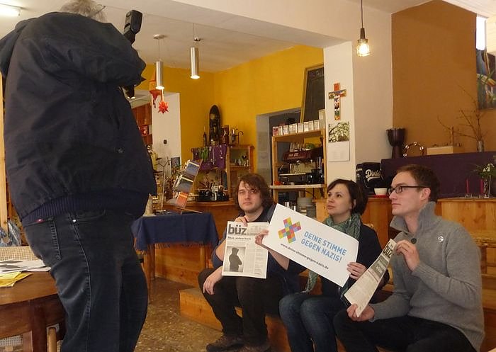 Autor: nnz15 ständige Mitglieder des Bündnisses gegen Rechts treffen sich in Nordhausen regelmäßig, um gemeinsam über Aktionen und Programme zu diskutieren und diese auch zu starten. Eine Aktion trägt den Titel Deine Stimme gegen Nazis, parallel dazu sind gemeinsam mit MOBIT acht Module erarbeitet worden. Hier werden die Schwerpunkte auf spezielle Themen gelegt. Die Referenten kommen aus verschiedenen gesellschaftlichen Sphären, wie die Mobile Opferberatung aber auch von der Polizei, aus der Kultur oder den Medien. Zusätzlich soll mit Plakaten auf die Aktion aufmerksam gemacht werden, hier sind Institutionen und Geschäfte gefragt.