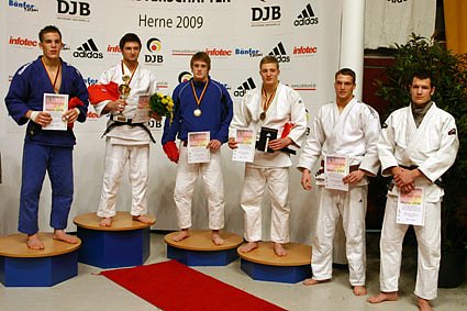 Martin hat seinen ersten Kampf nach 38 Sekunden mit seinem Spezialwurf vorzeitig gegen Jan Zeuke aus HH/ Bramf.SV gewinnen können. Im 2. Kampf traf er auf Torben Koch vom NW/ PSV Herford, diesmal brauchte Martin 01:02 min. um den Kampf vorzeitig zu beenden. Der 3. Kampf war der Einzug ins Halbfinale hier konnte sich Martin gegen Dominik Urich vom BY/ TSV Abendsberg nach 2 min. erfolgreich durchsetzen. Im Kampf um den Einzug in das Finale der Deutschen Meisterschaft traf Martin auf Marc Odenthal NW/ 1. JC Mönchengladbach, diesmal konnte Martin nicht gewinnen. Jetzt mußte er also im kleinen Finale gegen Cedric Glaser aus WÜ/ TSB Ravensburg um den größten Erfolg seiner sportlichen Laufbahn kämpfen, nach drei Minuten war es geschafft, mit einem vollen Punkt siegte er und belegte den 3. Platz.