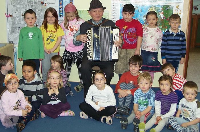 Autor: nnzEinige Tage zuvor übte er schon mit den Kindern ein russisches Lied und den Tanz vom Bären Mischka ein. Alle Kinder waren mit Begeisterung dabei. Sie sangen "Immer lebe die Sonne" auch auf russisch und Opa Josef begleitete sie auf dem Akkordeon.