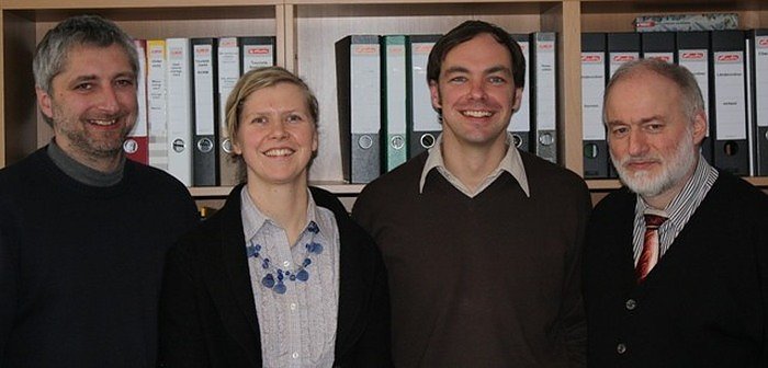 Autor: nnzVon links: Alexander Pilling, zuständig für die Themen Energie, Naturschutz, LEADER-Managerin vor Ort Kathleen Hahnemann, Sören Kube, zuständig für die Themen Forst, Wirtschaft und Prof. Dr. Kunze, Projektleiter des Teams