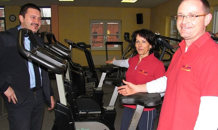 Über zehn Fitnessgeräte konnte sich jetzt die Berufsfeuerwehr Nordhausen freuen. Silvia Merkel, Inhaberin eines Nordhäuser Fitnesscenters übergab dem Leiter der Berufsfeuerwehr, Gerd Jung, gestern zwei Rudergeräte, drei Fahrradstationen, drei Stepper sowie zwei Laufbänder.