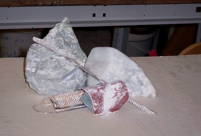Autor: nnzSpeckstein eignet sich dafür auf Grund seiner Beschaffenheit besonders gut. Es ist ein sehr weiches Gestein das man schon mit den Fingernägeln ritzen kann. Für die Formgebung werden meist die gleichen Werkzeuge wie für die Holzbearbeitung benutzt. Durch Raspeln, Sägen, Schleifen und Polieren wird dem Stein neue Gestalt und Ausdruck verliehen.