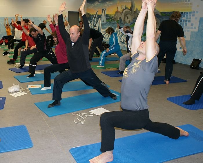 Sie verrenkten ihre Glieder und testeten ihr Gleichgewicht bei Capoeira, schöpften Kraft und Beweglichkeit, fanden aber auch Entspannung im Power-Yoga (vgl. Bild). Ihre methodischen Fähigkeiten beim Lehren koordinativ anspruchsvoller Techniken im Basket- und Fußball verbesserten sie ebenso wie im Schwimmen. Mögliche Tests für koordinative Fähigkeiten erfuhren und probierten die Teilnehmer im Lernbereich Gesundheit und Fitness, während für Sportförderunterricht mit neuen Bewegungsformen und Geräten experimentiert wurde. Schließlich kam auch die Rolle der Sportlehrerinnen und –lehrer in der Schulentwicklung allgemein und bei der Verbesserung der Unterrichts-Qualität des Faches zur Sprache.