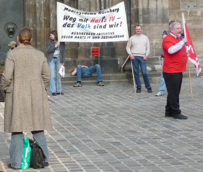 Es war ein Abstecher nach Nürnberg. Am Montag. An der Lorenzkirche standen einige Protestierer. Gegen die Nato, die Armut und Hartz IV. Doch niemanden interessierte es.