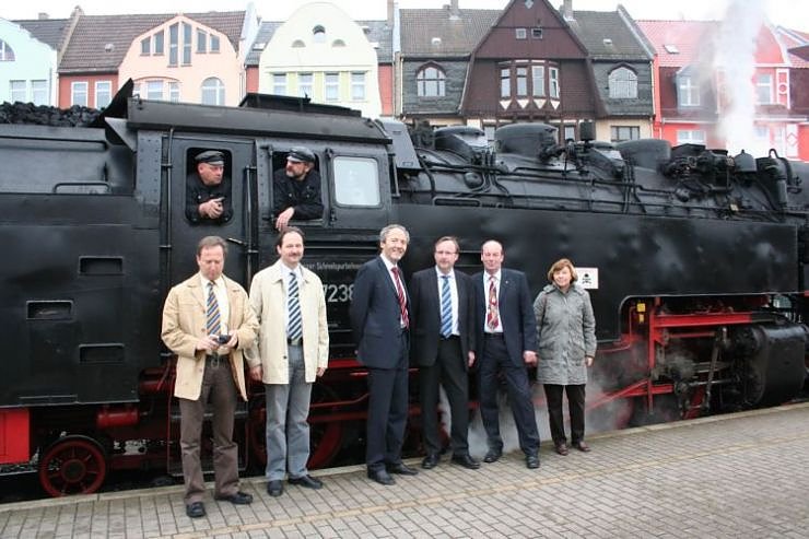 Heute kürte Matthias Wagener, Geschäftsführer der Harzer Schmalspurbahnen, Hans-Joachim Weirather und seine Kollegen zu Ehrenlokführern.