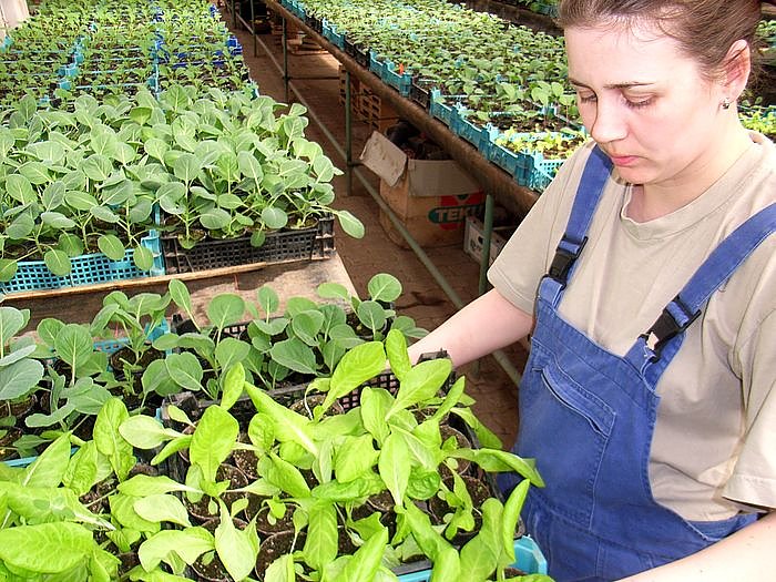 Unter der Aufsicht und Fürsorge von Yvonne Kleemann gedeihen Salat & Co. prächtig