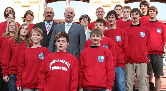 Zum Bundesfinale des Schulwettbewerbs Jugend trainiert für Olympia in Berlin fahren zwei Mannschaften des Humboldt-Gymnasiums. Fünf Turnerinnen und neun Volleyballer haben sich als Thüringer Landessieger qualifiziert. Sie wurden heute verabschiedet...