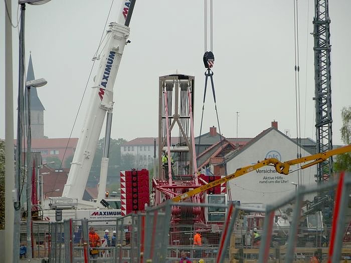 Am kommenden Samstag veranstaltet die Nordhäuser Stadtverwaltung eine Führung an der Baustelle in der Freiherr-vom-Stein-Straße. Dort werden die Arbeiten des Wochenendes vorbereitet. Ein Kran wird montiert, der bis zu 2.500 Tonnen heben kann. Die nnz war dabei...