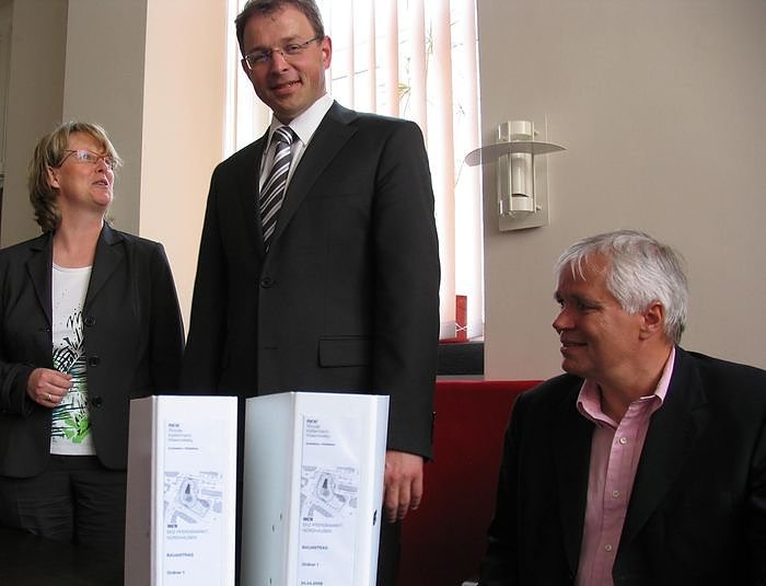 Autor: nnzInvestorenvertreter Gunter Seibert (2.v.r.) übergibt Dezernentin Inge Klaan (2.v.l.) die Unterlagen des Bauantrages