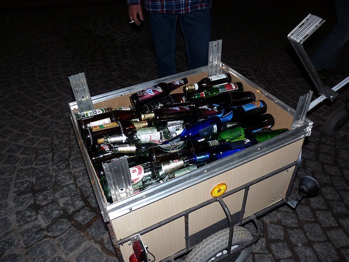 Die Flaschensammler rings um den Markt hatten einiges zu tun, wie dieses Foto zeigt. Und das war erst kurz nach Beginn. Trotzdem hatte man am heutige Morgen viel zu tun, um die ganzen zerbrochenen Flaschen wegzuräumen, denn immer wieder machte es mal klirr, wenn einer über die abgestellten Flaschen stolperte. Aber auch in anderer Hinsicht war es nicht ganz ruhig. Wie auf Anfrage die Polizeiinspektion Kyffhäuser mitteilte, gab es auf dem Markt auch eine Schlägerei.