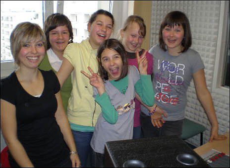 In den vorangegangenen Unterrichtsstunden hatten sie 4 verschiedene Hörspiele in Gruppen erarbeitet. Da die Hörspiele sogar in englischer Sprache vorbereitet wurden, steckte schon eine ganze Menge Aufwand und Anstrengung darin. Deshalb war es umso schöner, dass die Schüler die Gelegenheit hatten, im Rahmen des Wandertags den Offenen Kanal zu besuchen und die Hörspiele professionell aufnehmen zu lassen. Alle waren ganz aufgeregt und sehr von den Ergebnissen begeistert.