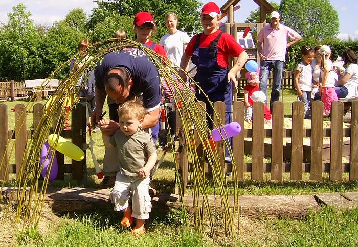 Autor: nnzDas sind Weidenruten, die wachsen ganz schnell und man kann sie zu allen möglichen nützlichen Sachen verarbeiten. Frag ihn doch selbst! Herr Fröbel, Korbbindemeister aus Neustadt, hat sich ein schattiges Plätzchen unter alten Apfelbäumen gesucht und zeigt den Kindern, wie man junge Weidenruten, die hier auf dem Spielplatz zu kleinen Bauwerken geformt sind, in Körbe, Tabletts oder Stühle verwandeln kann.