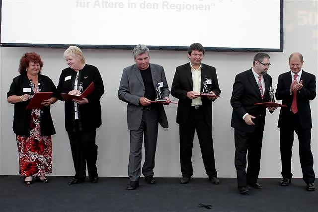 Autor: nnzOlaf Scholz ehrte die Botschafter anlässlich des Jahrestreffens von Perspektive 50plus, bei dem sich auch Vertreter der Regionalpakte mit Experten und Bundestagsabgeordneten austauschten. Im Landkreis Nordhausen ist die Jobwerkstatt ALTERnativ Ansprechpartner für Perspektive 50plus, die in diesem Jahr den ersten Geburtstag feierte. Bis Ende 2008 konnte die Jobwerkstatt 87 Arbeitssuchende über 50 Jahre wieder in sozialversicherungspflichtige Arbeit vermitteln. Außerdem nahmen fast 560 ältere Leistungsempfänger an so genannten Aktivierungsmaßnahmen wie Bewerbungstrainings teil.