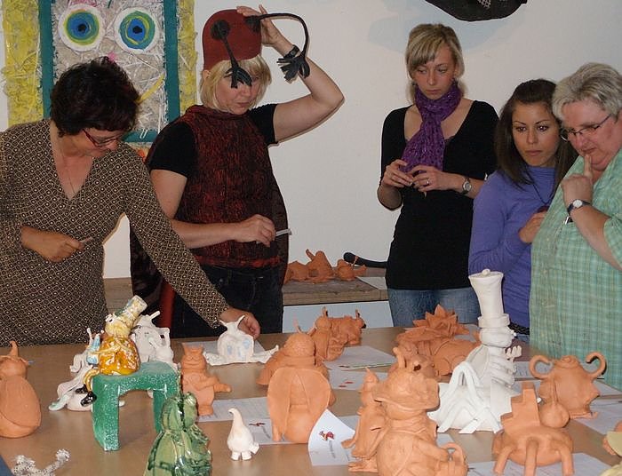 Autor: nnzDenn die nahezu 30 kreativen Köpfe, die in den vergangenen Wochen Treppenkäfer getöpfert hatten, waren nun aufgerufen, unter diesen die Modelle für die zukünftigen Bronzekäfer auszuwählen.