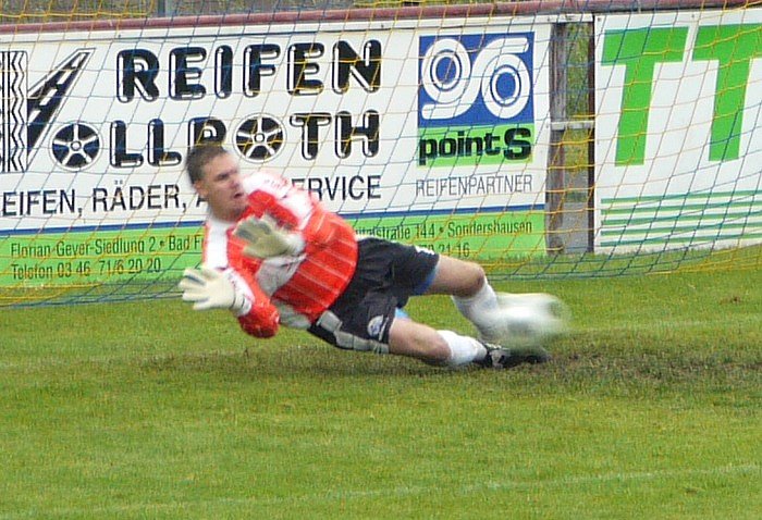 Was dann allerdings folgt, das gleicht eher der Muppet-Show. Sondershausen stürmt und stürmt und stürmt und: schießt kein Tor. Es sind die 100prozentigen oder die 1000prozentigen Chancen, die entweder die eigene Unfähigkeit oder der exzellent haltende Nordhäuser Schlussmann Lars Greschke zunichte machen. Großchancen können nur stichpunktartig notiert werden: 4., 16., 21. – es sind Axel Duft oder Sebastian Caspar als Versager vor dem Nordhäuser Tor.
