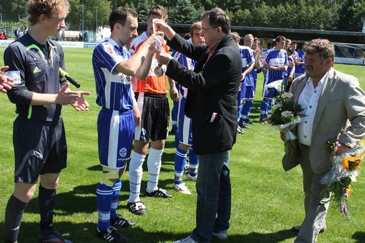Schiedsrichter Lothar Kruse aus Hundeshagen leitete heute sein letztes Thüringenligaspiel und wurde mit einem Blumenstrauß für seine erfolgreich Laufbahn geehrt. Vereinspräsident Detlef Zeitler und Vizepräsident Bernd Seidenstücker verabschiedeten dann unter dem Beifall der Zuschauer Trainer Burkhard Venth und dankten ihm für seine erfolgreiche Arbeit mit der Mannschaft. Auch Gerald Emdes bisherige Tätigkeit als Mannschaftsleiter wurde gewürdigt. In einem Gespräch mit dem Vizepräsidenten signalisierte er Bereitschaft, in geeigneter Weise weiter für den Verein zu wirken.