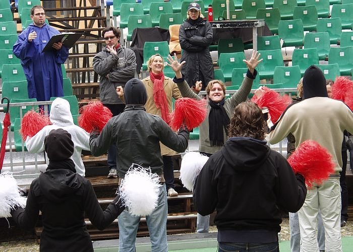 Die Kostüme werden zurzeit in der Schneiderei des Theaters fertig gestellt, zum Schutz vor der Witterung konnten die Künstler warme Kleidung anziehen. Zum Glück soll die Schlechtwetterphase bald zu Ende gehen, so dass sich alle Beteiligten auf schöne Vorstellungen bei warmem Wetter freuen. Die Bühne und die Zuschauertribüne, die rund 700 Zuschauern Platz bietet, sind bereits aufgebaut.