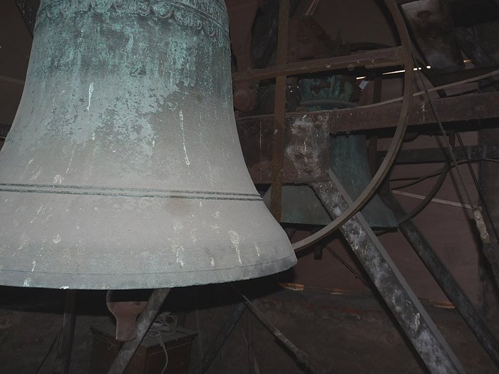Beim Gang durch die völlig von außen mit Gerüsten zugestellte Kirche führte sein Weg auch zu den Glocken. Bei einem seiner letzten intensiven Inspektionen seiner Kirche war ihm an einer der Glocken etwas seltsames aufgefallen. An der aus der Glockengießerei Apolda stammenden Glocke stand nicht etwa Werk Apolda, sondern Werk Aploda. Ein Fehler beim Guss, der bisher völlig unbemerkt geblieben. Sogar in allen Gutachten zur Glocke ist dieser Fehler nicht verzeichnet worden, wie Pfarrer Albrecht bemerkte.Die Glocke hat einen eigenen Namen und heißt Johannes der Täufer und wurde 1924 von den Gebr. Ulbrich in Apolda gegossen. Zwischen den Stegen ist die Inschrift :