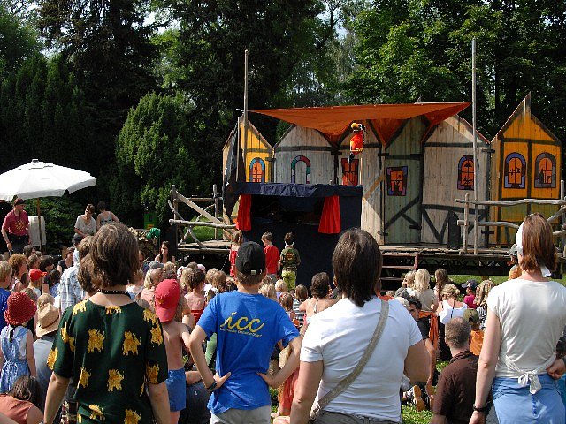 Auf der Marktbühne hopsen schwule Schuhplattler, singen drei israelische Mädchen wunderbare Lieder, im alten Rathaus erzählt die chinesische Sängerin Gong Linna ihr Leben, Hans Söllner wird im Schminkkasten von Mike Kemp interviewt und die Sonne brennt heiß auf die nunmehr 70.000 Festivalgäste. Im Park finden die Kasai Allstars das Wetter absolut toll und zelebrieren die Musik und Tänze ihrer afrikanischen Heimat nur leicht mit einem Leopardenfesll bekleidet. Allerdings keine Kriegstänze, wie Festivaldirektor Uli Doberenz betont. Weswegen aus den Tanzschwerpunkten Männer- und Werbetänze auch die Werbetänze gestrichen wurden. Zu schnell hätte da der eine oder andere Tänzer sein Tomahawk schwingen können und das passt nun wirklich nicht zum friedlichsten aller deutschen Sommerfestivals.