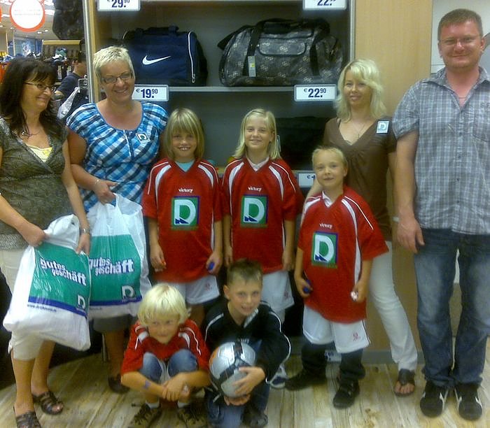 Über einen Satz neuer Trikots von Deichmann konnte sich die F – Junioren – Mannschaft des VfL 28 Ellrich freuen. Neben dem Trainer Marco Gründer strahlten auch Lea Wohlfahrt, Sarah-Michelle Schmidt, Justin Wiemann, Paul Gruber und Marlon Kreitmeyer.