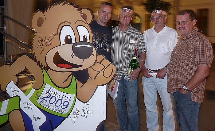 Die Begeisterung der Zuschauer gestern Abend kannte auf dem Markt von Sondershausen keine Grenzen. Bürgermeister Joachim Kreyer (CDU) freute es besonders, dass gerade die Athletin, die am häufigsten den Weg nach Sondershausen zum Sparkassenmeeting gefunden hatte, auch noch "frische" Weltmeisterin wurde. Und das Schöne dabei, in ihrem größten sportlichen Triumph fand Steffi trotzdem wieder den Weg nach Sondershausen zum Sparkassenmeeting.
