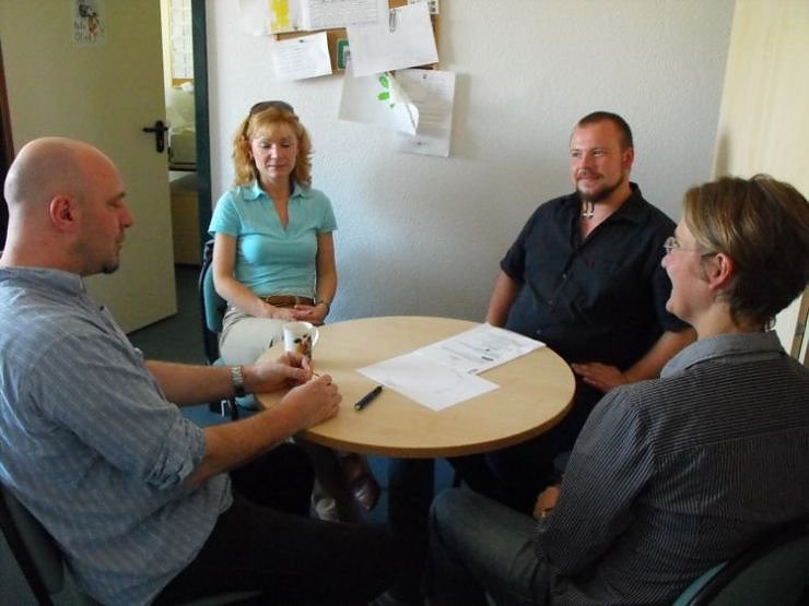 Niedersächsische Lehrer im OKN beim brainstorming mit OK-Leiter Schulze