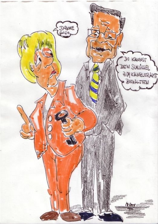 Mit Ausgang der gestrigen Bundestagswahlen hat sich auch nnz-Karikaturist Martin Höfer beschäftigt. Vor allem wollte er wissen, was jetzt mit dem Schlüssel zum Kanzleramt passiert?