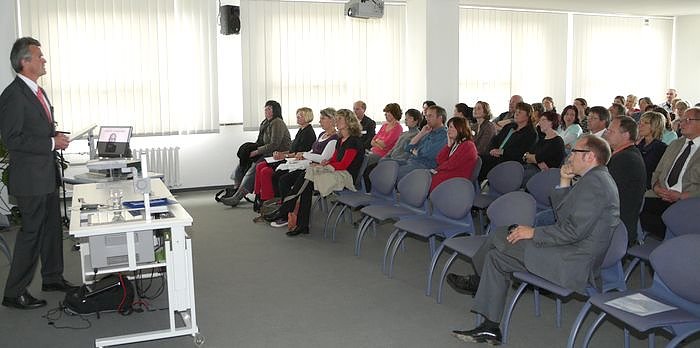 Autor: nnzIn seinem einleitenden Vortrag (im Bild) ging der Chefarzt der Klinik für Psychiatrie, Psychotherapie und Psychosomatik, Dr. Dr. Reinhard Arndt, auf die Geschichte der Kinder- und Jugendpsychiatrie in Nordhausen ein.