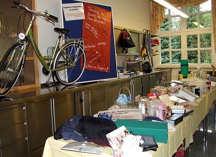 Die Mitarbeiter aus dem Hospiz und dem Förderverein bereiteten zu diesem Anlass eine Tombola vor. Der Hauptpreis, ein Damenfahrrad, gesponsert von der Firma Illhardt aus Niedersachswerfen ging an ein Ehepaar aus Nordhausen. Weitere Hauptgewinne kamen u. a. in Form von Gutscheinen aus Fitness-Studios in Nordhausen.