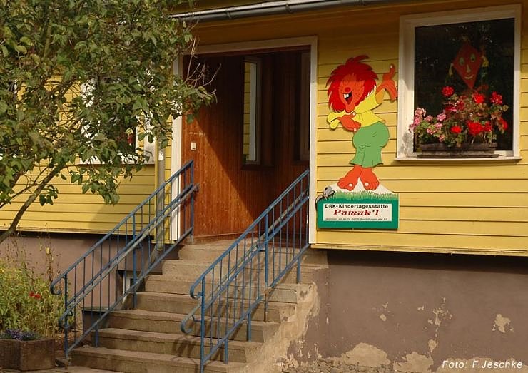 M. Hildebrandt: 1949 -Eröffnung mit dem Namen Erntekindergarten- Unterbringung bis zum Neubau, jetzige Kita. 1983 in verschiedenen Gebäuden, unter anderem 2 Gruppen im Gutshaus, der damaligen Gemeindeverwaltung. Insgesamt wurden damals 90 Kinder betreut. Die Namensgebung erfolgte durch Vorschläge und Abstimmung mit Eltern und Kinder.