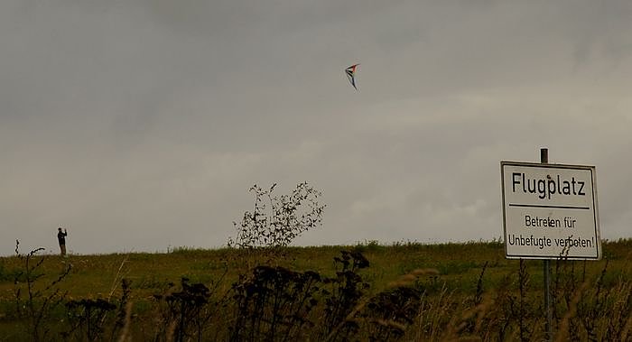 Hier wird fahrlässiger Leichtsinn präsentiert! Das Foto spricht doch wohl für sich, die Aufschrift auf dem Schild : "Betreten für Unbefugte verboten" steht hier nicht umsonst! Es ist gesetzlich untersagt, auf dem Sonderlandeplatz Nordhausen Drachen steigen zu lassen. Derartige Freizeitvergnügen müssen mit mehreren hundert Meter Abstand erfolgen.