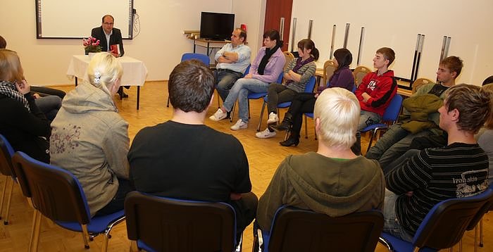 Autor: nnzIn der zehnten Klasse hatte Bürgermeister Matthias Jendricke Platz genommen und las aus einem Buch von Christian Führer, dem ehemaligen Pfarrer der Leipziger Nikolaikirche. Jendricke erzählte aber auch, wie er die Zeit des Jahres 1989 als damals 17ähriger erlebt hatte.