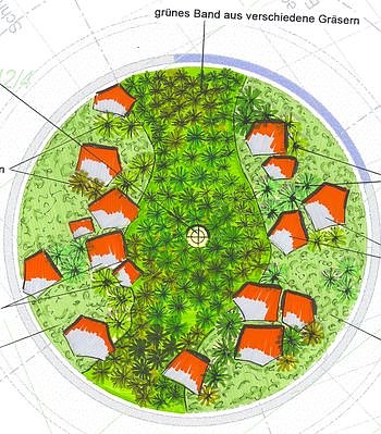 Optisch wird diese Fläche an die Bergbautradition der Kalistadt anknüpfen. So wird in der Mitte des Radius eine große Grubenlampe mit Beleuchtung aufgestellt. Ein grünes Band aus verschiedenen Gräsern durchläuft den Kreis. Rote Bruchsteine, umgeben von flachen Bodendeckern und verschiedenen Gräsern, lehnen ebenfalls an die traditionsreiche ehemalige Kaliindustrie von Bleicherode an.