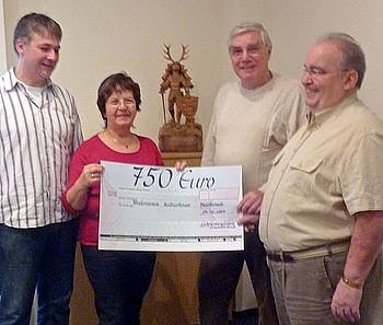 Die Veranstalter gehen von rund 500 Besuchern aus, was einen Reinerlös von 750 Euro einbrachte. Das Geld wurde durch Heidrun Watzlaw und Wolfgang Lindner an Heinz-Dieter Kerl (rechts) und Jörg Lorenz dem stellvertretenden Fördervereinsvorsitzenden (links) übergeben.