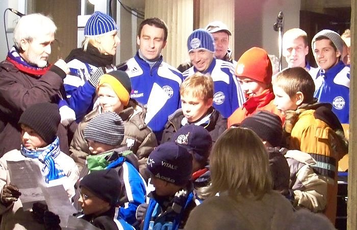 Autor: nnzZunächst sangen die Jüngsten "Rudolph the Red-Nosed Reindeer". Anschließend interviewte Kerstin Weiß den Nachwuchsleiter Detelef Ludwigs. Mit "Oh Tannenbaum" kamen auch die kräftigen Stimmen der Männer hinzu.