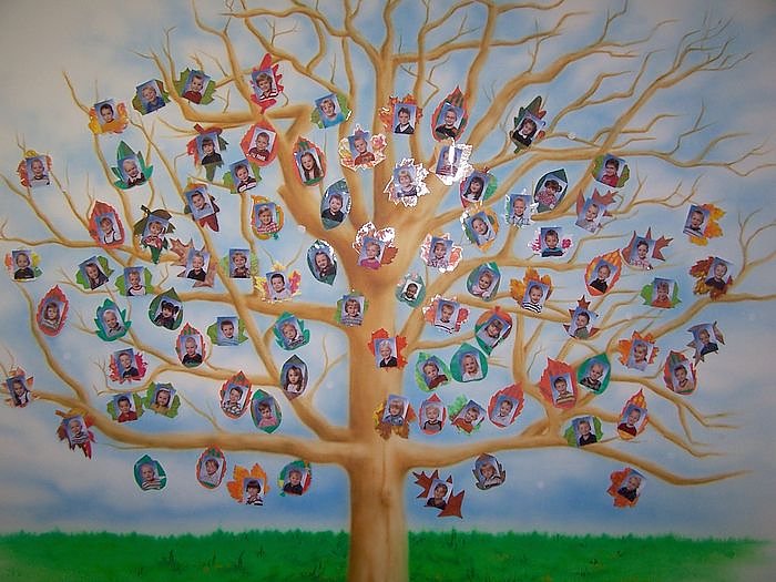 Wir sind alle Blätter an einem Baum, keines dem Anderen ähnlich, das eine symmetrisch, das andere nicht und doch gleich wichtig dem Ganzen." Ausgehend von diesem Lessing-Spruch gestaltete der Künstler Torsten Stoll im Eingangsbereich unseres Montessori – Kinderhauses einen Baum in A-Technik. Alle Kinder finden sich an diesem Baum auf einem selbstgebastelten Blatt mit Foto wieder.