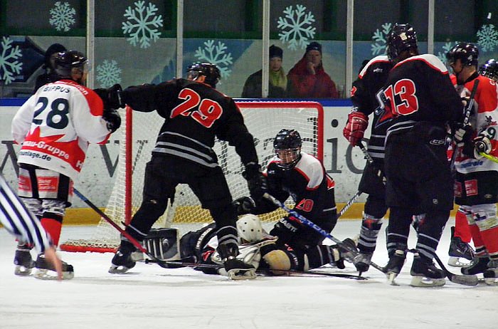Die Wölfe mussten in Bremen neben Benjamin Schulz, Vadim Jost und Erik Pipp auch auf Markus Schneider verzichten, der sich in der Partie gegen Timmendorf verletzt hatte. Christian Schock rückte dafür wieder in die Abwehr, Michele Meridian in die erste Sturmformation. Obwohl die Weser Stars durch Paul Schön bei ihrer ersten Überzahlgelegenheit sofort trafen (3.), zeigten sich die Harzer keineswegs beunruhigt. Deibert markierte den Ausgleich (8.), Bippus traf perfekt von Enns bedient zur Führung (15.), die bis zur Pause auch noch höher hätte ausfallen können.