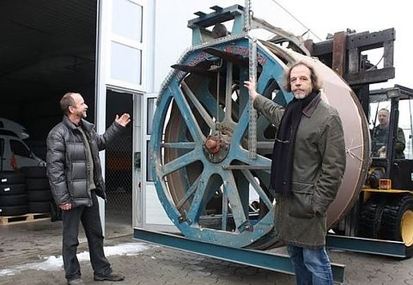 Lutz Walter, Restaurator für historische Papiertapeten (im Bild links), ersteigerte sie in der letzten Woche von der insolventen Firma und übergab sie jetzt Museumsleiter Jürgen Rennebach (rechts) in Nordhausen. Vorerst werden wir sie in einer Halle des Autohauses Peter zwischenlagern, bis wir einen günstigen Ausstellungsort - entweder im Museum Tabakspeicher oder im geplanten Industriemuseum des IFA-Museum Nordhausen am Harz e. V.- gefunden haben, sagte Jürgen Rennebach. Auf jeden Fall freuen wir uns, dass wir relativ günstig ein Exponat erstanden haben, dass an eine bedeutende und traditionsreiche Nordhäuser Firma erinnert – nämlich die erste deutsche Papiertapetenfabrik.