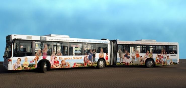 Mit dem Schulbus zu fahren macht Spaß. Und er ist ein echter Hingucker: der Schlenkerbus der Verkehrsbetriebe. Auf der Außenhülle sind die Fotos von Kids verschiedener Altersgruppen mit einer Spezialfolie montiert; drinnen fahren die Schüler aus Bleicherode, Wipperdorf und anderen Orten in ihre Schulen.