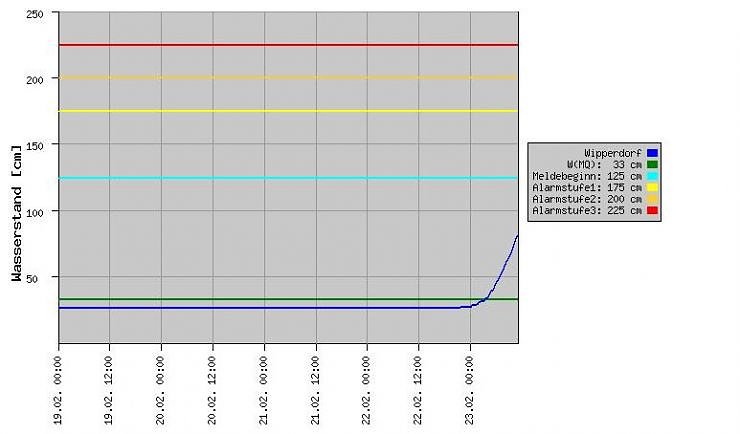 ), die letzten 12 Stunden ging es so richtig zur Sache. Und der Dauerregen kann bei dem noch gefrorenen Boden kam versickern. Auch kleine Gräben und Bäche könnten jetzt schnell zu Problem werden. Wer da früher schon mal Probleme hatte, sollte jetzt wachsam sein. Noch ist man von einem Hochwasser weit entfernt. Noch so ein Anstieg in 12 Stunden könnte die Sache kritischer werden lassen.