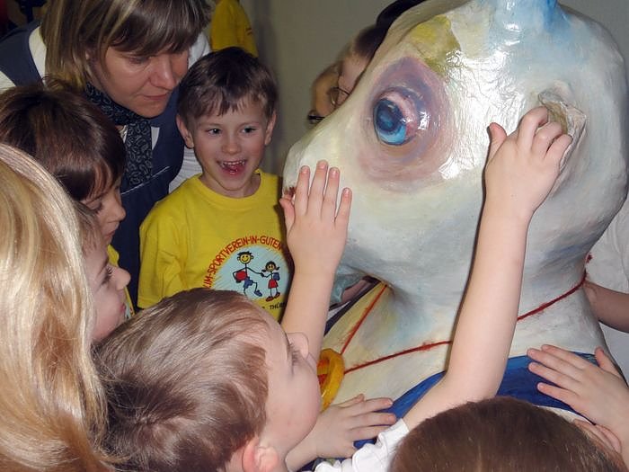 Belohnt werden die Kinder dafür mit dem Turnböckchen. Den Wanderpokal hat die Nordhäuser Jugendkunstschule gerade erst neu gestaltet. Nun gastiert das funkelnagelneue Turnböckchen für ein halbes Jahr in Heringen. Christine Wagner, Fachbereichsleiterin Jugend und Soziales im Landratsamt Nordhausen, überreichte heute den Wanderpokal an die begeisterten Kinder und Erzieherinnen in der "Kobenach-Stiftung" Heringen.
